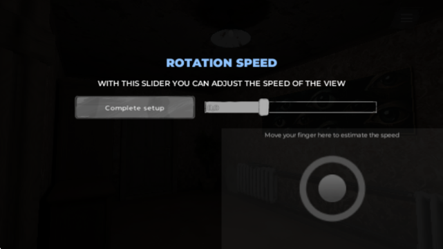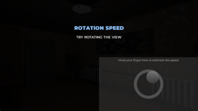 5.在“ROTATION SPEED”界面,按照提示“Move your finger here to estimate the speed”滑动手指尝试视角旋转速度。
