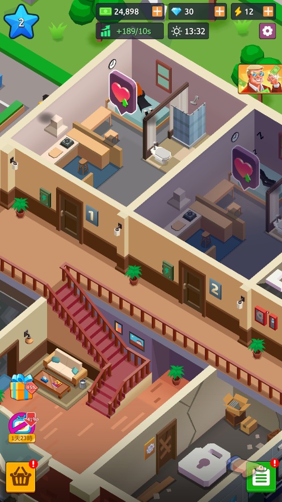 公寓大亨是一款休闲模拟经营游戏,在公寓大亨中,玩家将扮演一位公寓大楼的管理者,通过购买、租赁和升级房屋,吸引租客,提供舒适的生活环境,并发展出完善的社区。游戏以其真实模拟的经营体验、丰富的游戏内容和社交互动,为你带来更加轻松悠闲的经营体验。