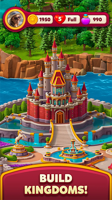 1、三消玩法与王国建设的深度融合,化身年轻国王理查德,对抗黑暗之王,拯救被俘虏的公主。
