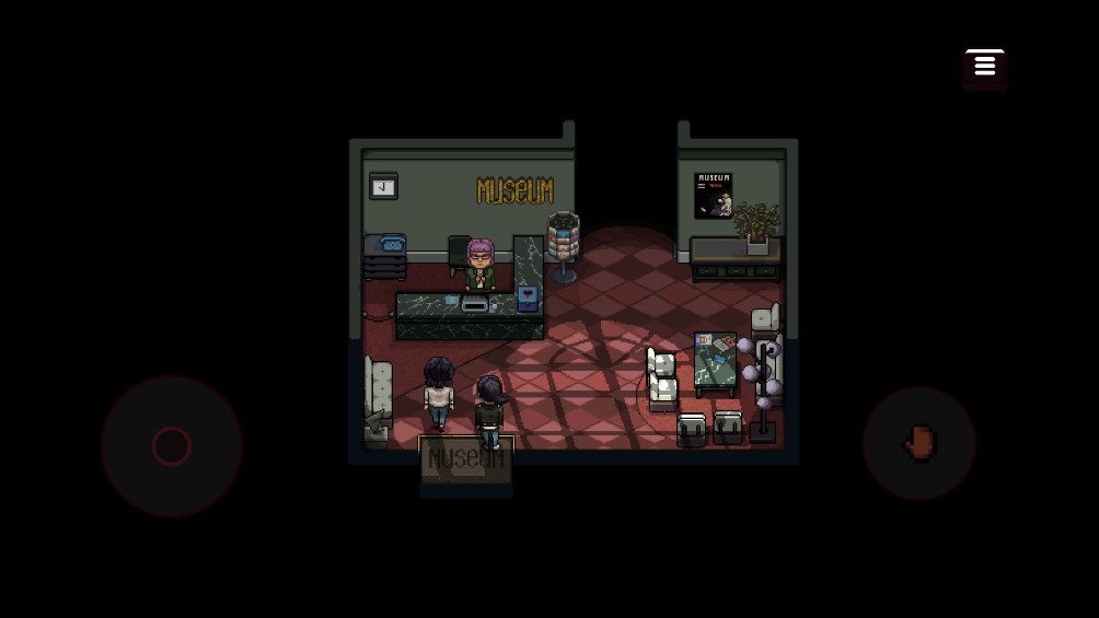 3.移动角色跟随者剧情来到展览馆,一直来到这里面左边的通道看见意外场景,你现在想立刻离开这里。