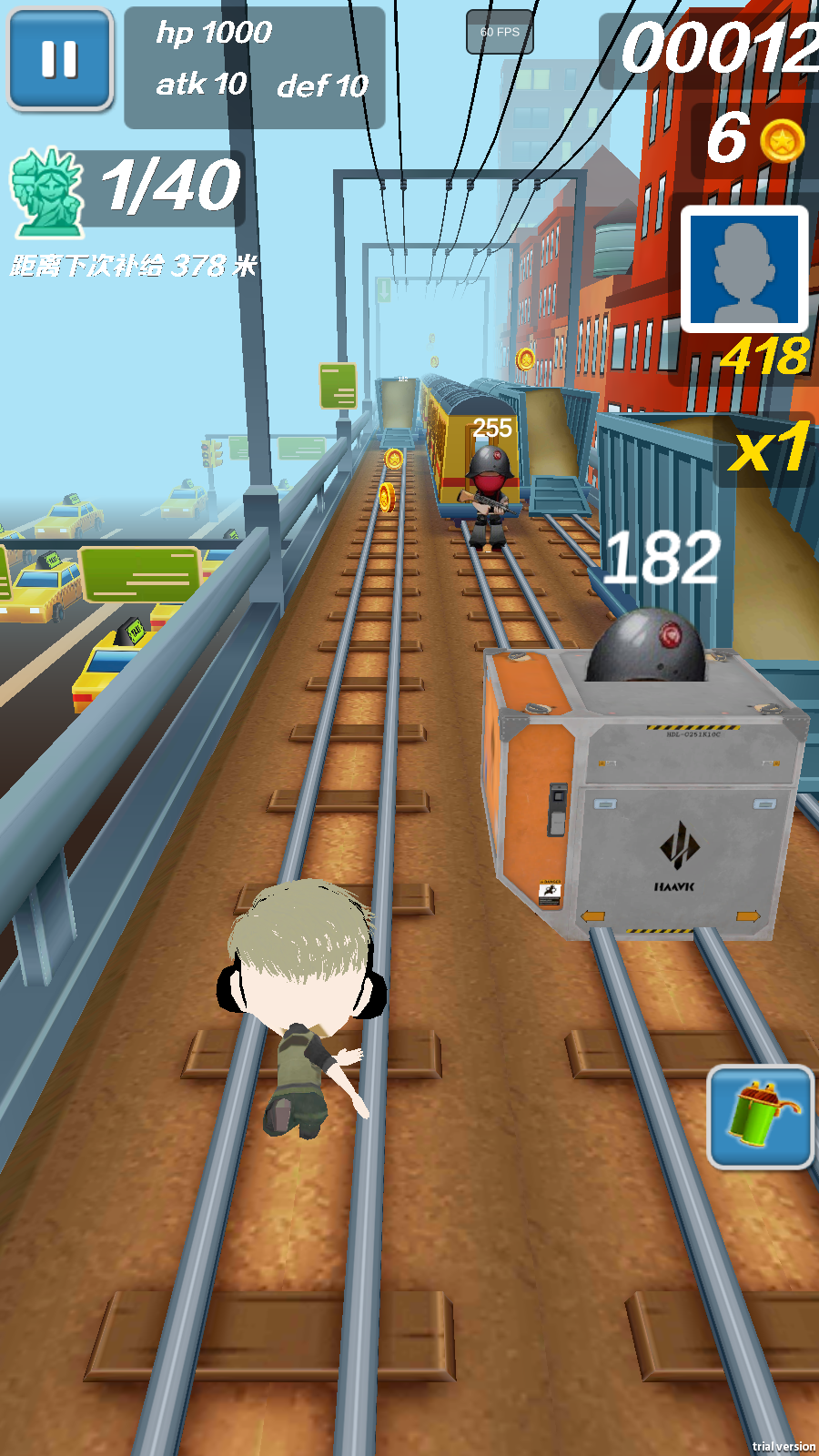 2、在跑酷过程中上下左右滑动屏幕可以控制角色躲避障碍物。
