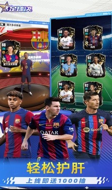 2、动态球星系统与羁绊加成,球员可通过升星解锁专属必杀技,激活特定球星组合可触发羁绊效果。
