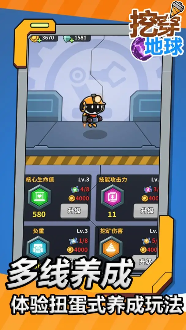 3、科技树与装备系统,自由搭配钻头、引擎、护甲等部件,打造专属掘进机甲,连钻石层也能轻松粉碎。