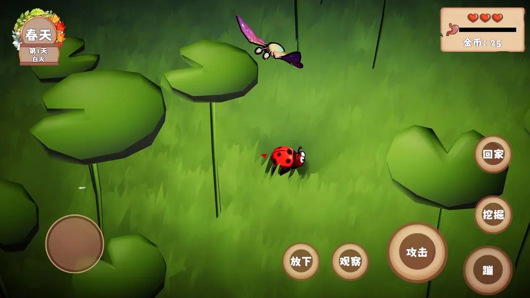 游戏采用独特的微观视角,让你以昆虫的视角观察这个世界。每一片草地、每一朵花都变得无比巨大,充满了未知的危险和机遇。