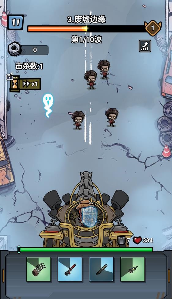 3、放好武器后点击开始开战就可以进行闯关,角色会自动使用武器来攻击敌人,消灭敌人可以获得经验。