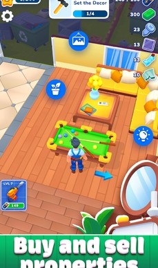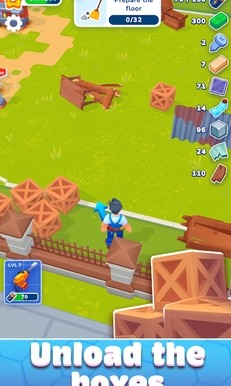 装修日房屋改造手游是一款模拟建造与装修的休闲游戏,一场龙卷风席卷了地区,留下了玩家梦想中的家一片废墟。玩家将扮演一位装修工人,任务是恢复这个曾经美好的家。提供了多样的装修风格供玩家选择,包括现代简约、欧式复古、乡村田园等,需要移动人物拾取地上的锤子,靠近地面上的垃圾进行自动清理,获得道具,可以根据自己的喜好和预算进行创意设计,选择合适的家具和装饰品进行房屋的设计与布置。