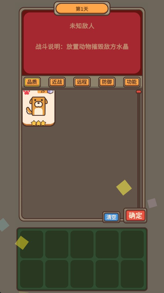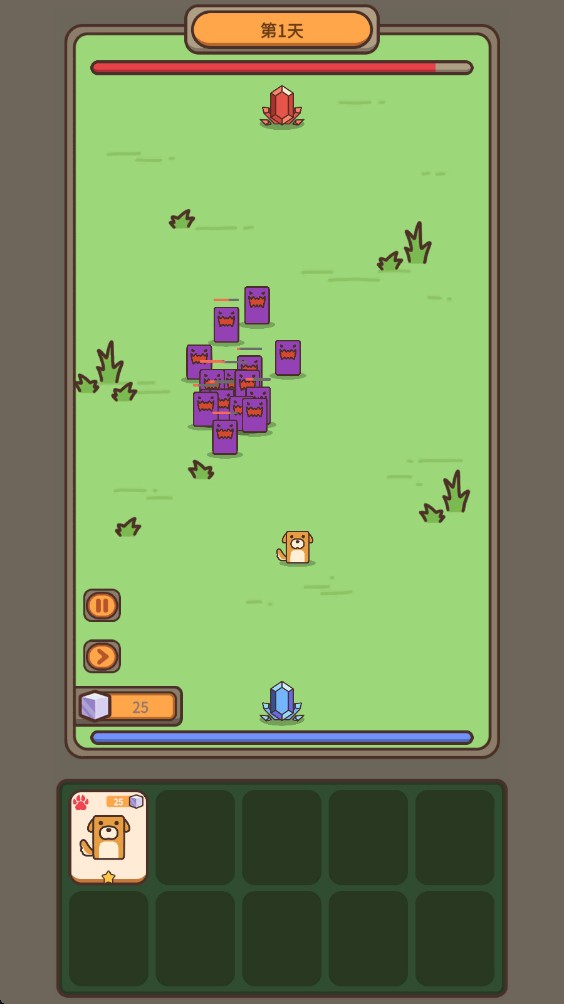 3.进入战斗界面(如第1天),动物会自动与紫色怪物等敌人战斗,需关注战斗进程,确保动物能成功击败敌人。