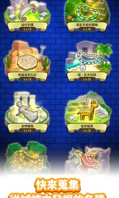 LINE秘宝挖挖哇港台服手游是一款以收集石板配对消除为核心玩法的休闲益智类游戏,规则简单易懂,玩家需收集三块相同的石板完成消除,即可轻松过关,保管区空间有限,需合理安排石板放置顺序,避免被石板填满导致失败。挑战关卡赚取金币,通关后解锁秘宝并填充秘宝图鉴,金币可兑换道具(如扩大保管区容量、提示石板位置等),提升通关效率,收集秘宝则可解锁成就,部分秘宝需通过特殊活动或高难度关卡获取。