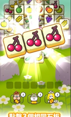 1、经典三消机制,以“匹配三块相同石板”为核心玩法,点击屏幕将石板放入保管区,集满三块相同石板即可消除。