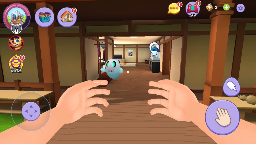 7、将视角对准宠物的“饭碗”,点击屏幕右下角的“小手标识”即可投喂。