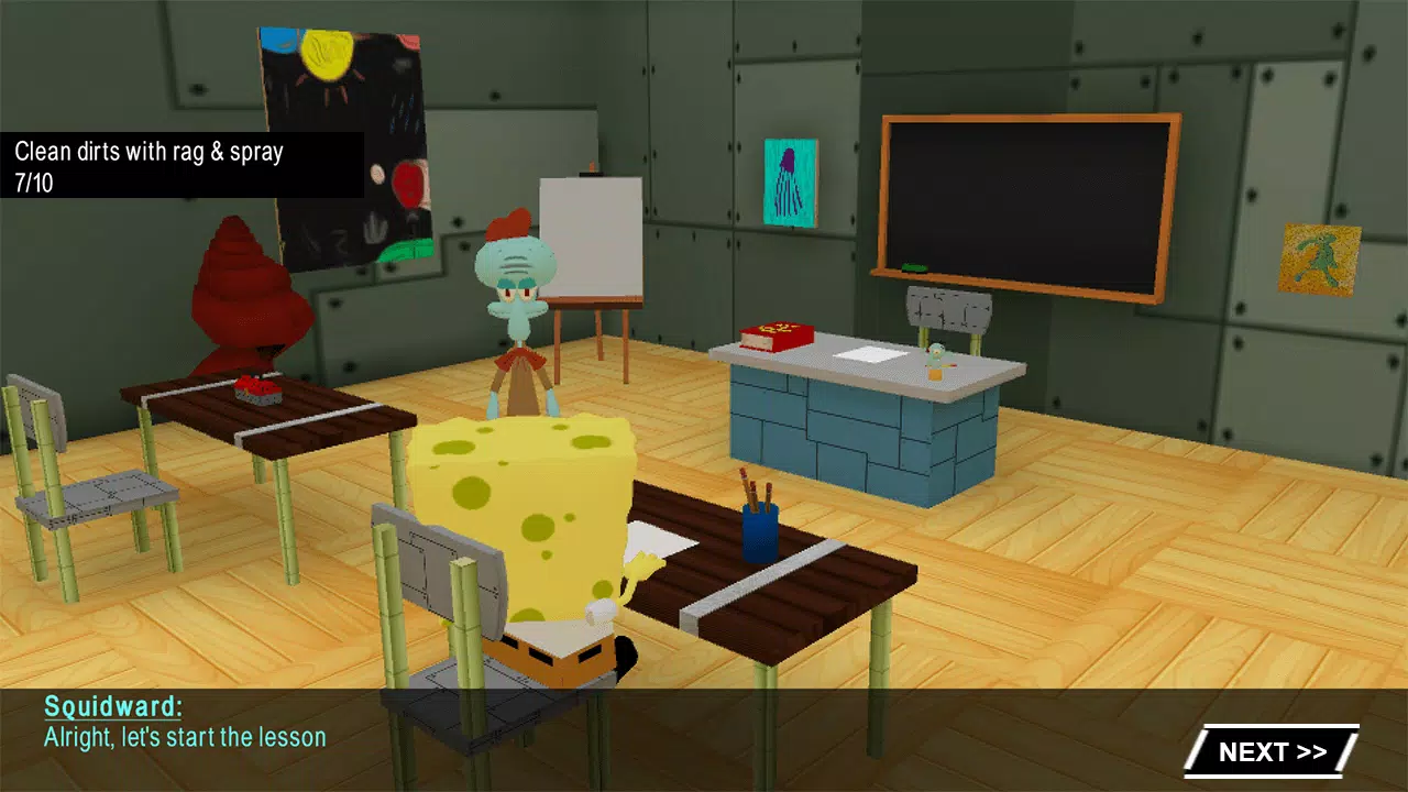 9.根据左上角任务指示,前往房间内领取工具,按提示完成后续的各项清洁任务。