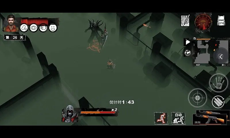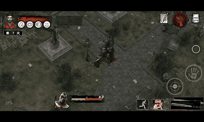 3、策略战斗与动态战场,靠近僵尸时自动进入潜伏状态,从背后偷袭可造成高额伤害甚至秒杀弱小僵尸。