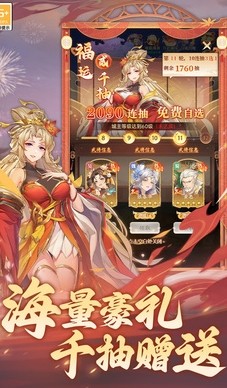 1、三国题材与国风美学融合,通过精美国风立绘还原关羽、诸葛亮、赵云等历史名将,卡牌设计兼具高颜值与历史厚重感。