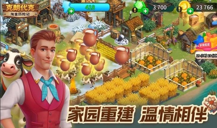 淘金历险记克朗代克手游是一款融合城市建造、农场经营与荒野冒险的休闲模拟手游,以19世纪的克朗代克淘金热时期为背景,玩家将扮演一名初到阿拉斯加荒野的开拓者,从零开始搭建营地、开采资源、探索遗迹,在经营与冒险的平衡中打造专属淘金帝国。通过饲养牲畜(如奶牛、小鸡、绵羊等)和种植作物(如土豆、小麦、番茄等)来获取原材料,再通过城镇市场进行售卖,换取维持生活的必需品等。