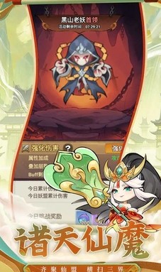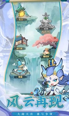 1、萌系西游英雄与法宝系统,西游神话中的经典角色(如孙悟空、猪八戒)以迷你造型登场,每个英雄拥有专属神通和技能。