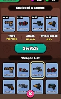 1、武器升级与终极技能,通过升级武器提升火力,从基础手枪到火箭筒,武器类型丰富多样。