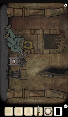 39、潜水艇—操作台视角:接下来我们前往最后的目的地;点击操作台上方的装置,转动阀门两次,将深度调整到50。