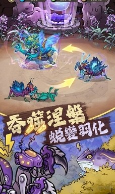 1、螳螂在育场持续产出金币,用于升级、建造及解锁新功能,形成“繁殖-资源-进化”的闭环生态。