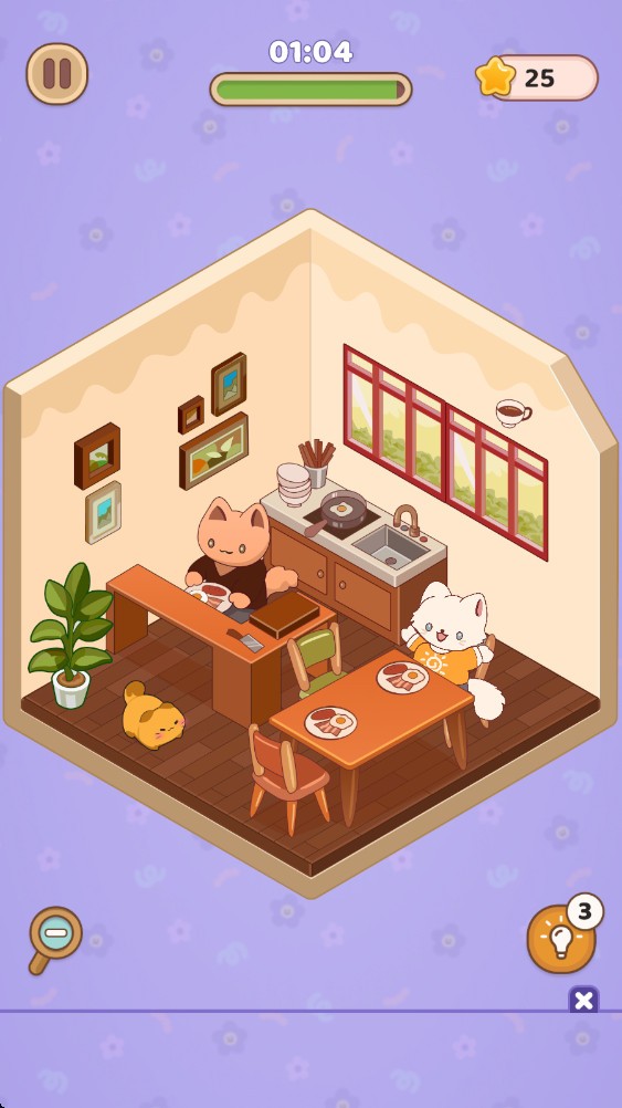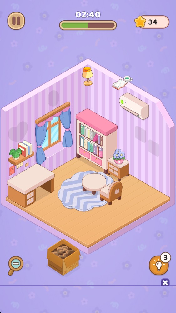 4.随着物品一件件摆放,房间会变得越来越完整,充满生机,过关之后就可以获得奖励。