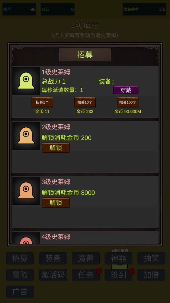 3.你还可以在招募里面选择更高等级的史莱姆。