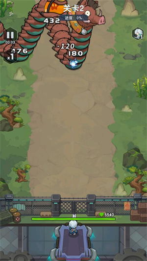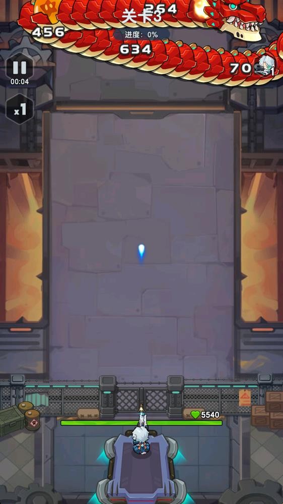 2、进入关卡后巨龙会慢慢向你靠近,角色会自动发射子弹,你可以移动角色来攻击巨龙。