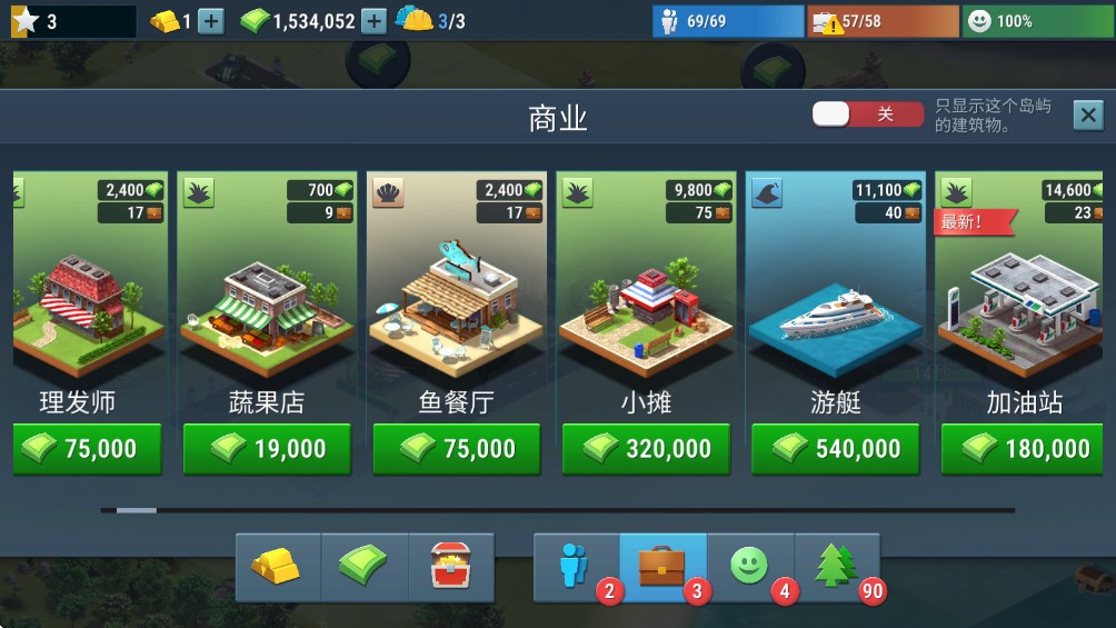 1.开始游戏后,我们点击左下角的购物篮,在这里找到建筑开始建设。
