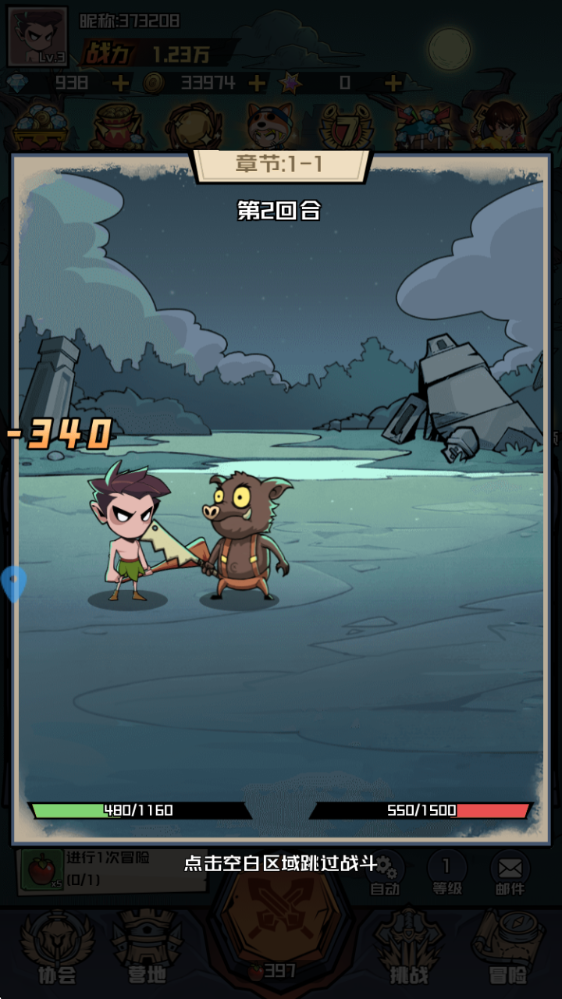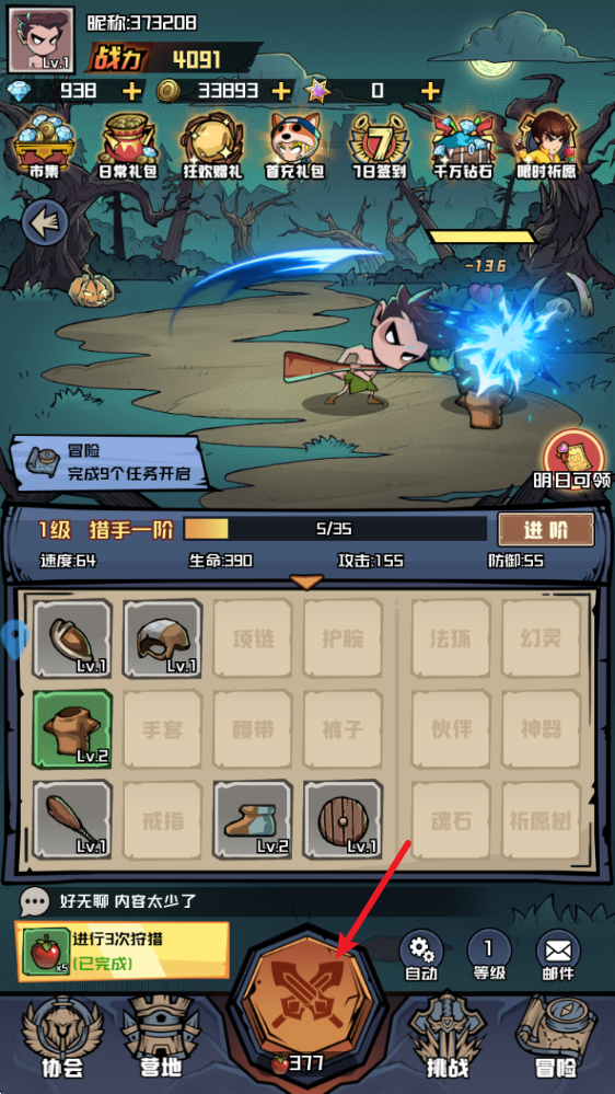 1、进入游戏后,点击下方的攻击即可不断击败怪物。