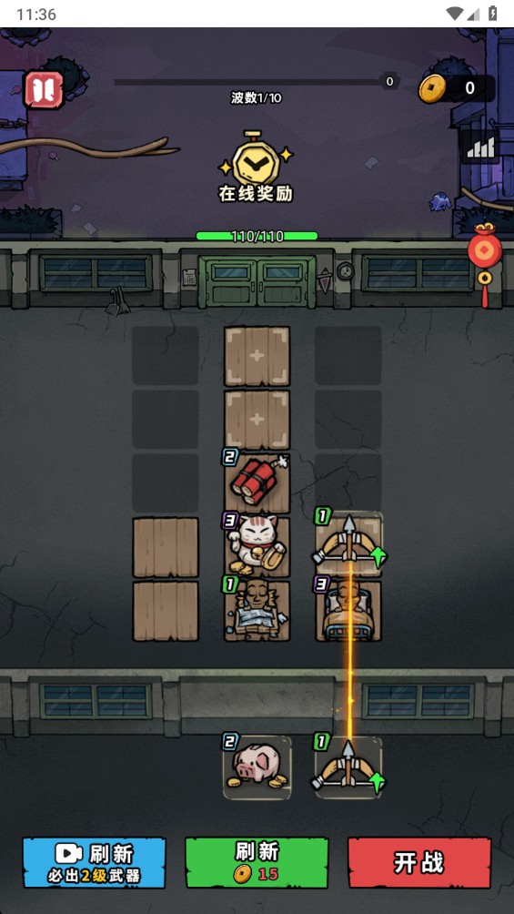 2.可以选择看广告升级你的装备,点击开战。