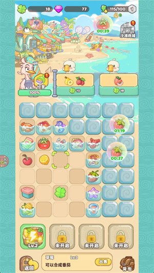 游戏的核心玩法是合成消除。玩家需要通过移动方块,将相同的物品合成在一起,提交客人的订单任务。