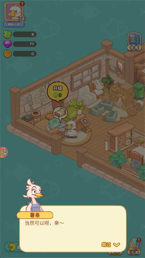 3、当获得一定数量的树叶后就可以解锁新的设施和店铺,还可以消耗树叶对设施进行升级。