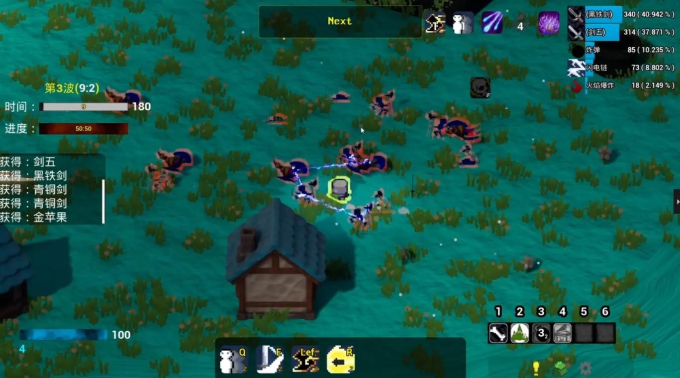4、每一波都需要消灭一定数量的敌人,完成一波挑战后会获得新的天赋和金币,金币可以用来购买新的武器和道具。