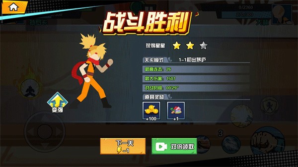 5、将敌人打败后便可获得游戏的胜利,从而获得想对应的奖励;进入到下一关