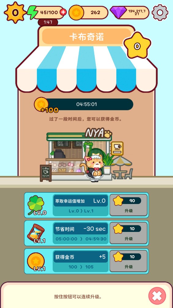 即使暂时离开,你的咖啡馆也会自动运营,猫咪们会帮你照看生意。当你回来时,可以领取一笔丰厚的离线收益,成长永不间断。