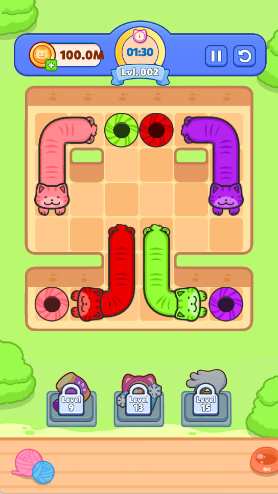2、规划猫咪移动顺序,例如先移开遮挡路径的猫咪,为其他颜色猫咪腾出通行空间,避免路径冲突。