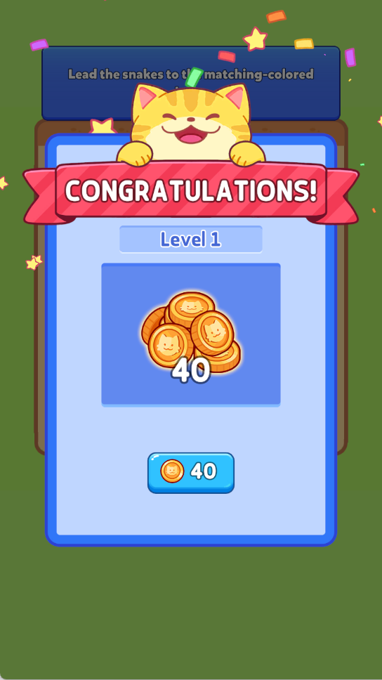 1、点击屏幕操控液态猫咪移动,遵循颜色匹配规则,仅能引导猫咪进入相同颜色的出口完成逃脱。