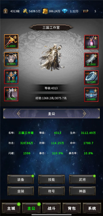 第二步,进入主城副本,前期挑战副本有点难度,可以先扫荡获得经验,武将宝箱,坐骑宝箱,然后在背包里面开启宝箱,获得武将和坐骑,进入主公页面里面的武将和坐骑里面,将武将和坐骑出战,提高战斗力
