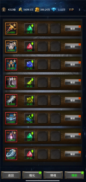 第五步,做完以上基本可以达到10级,装备需要注意,可以强化,铸魂,和镶嵌宝石,