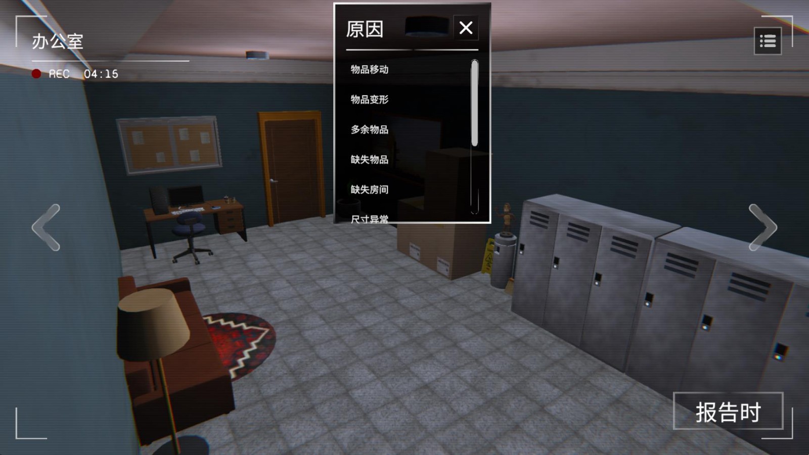 3、正式开始后点击左右箭头可以切换不同的场景,第一次的场景是没有任何异常的,当全部场景都检查一遍后就会随机出现异常现象。