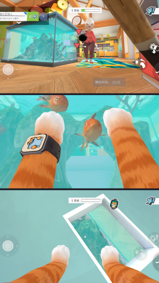 4、完成任务后,用所得调皮值解锁新的小猫皮肤、特殊动作,以及更复杂的家居场景与互动道具。