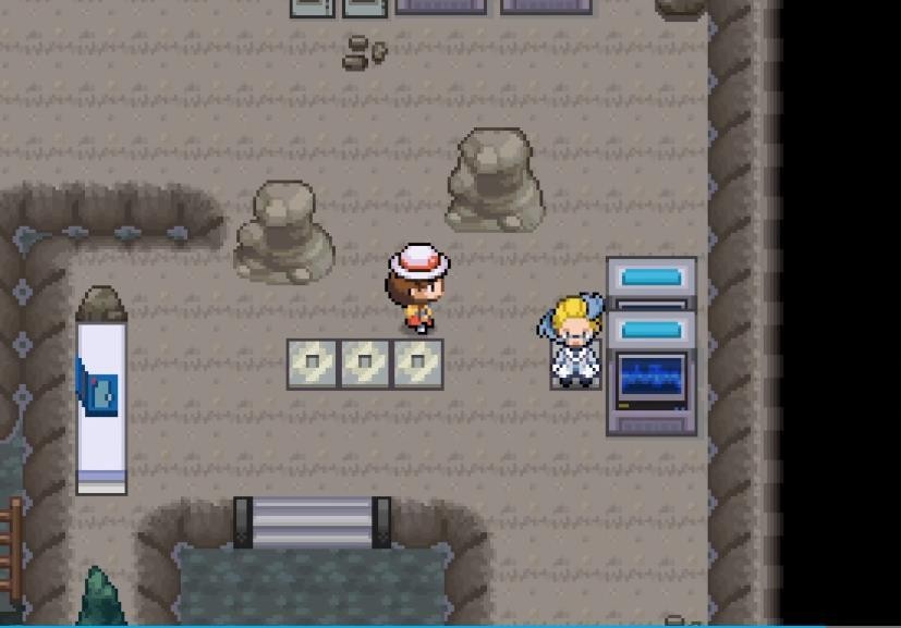 2、进入宝可梦中心后,直接上二楼,与最里面的黑色西服npc对话,