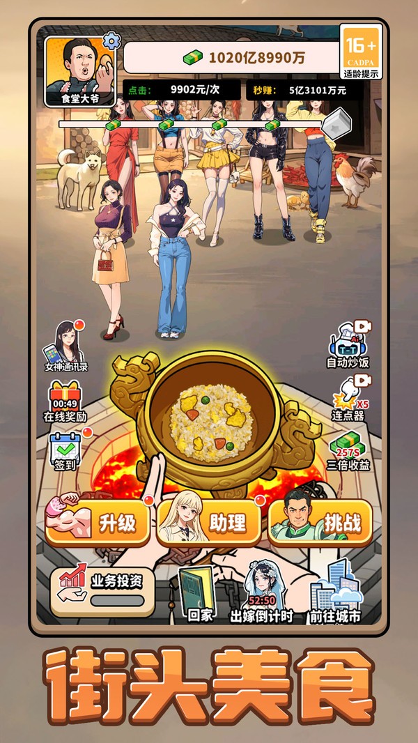一款融合休闲点击、模拟经营与逆袭剧情的治愈系手游,带你体验从“摊贩小白”到“美食大亨”的爽感人生!