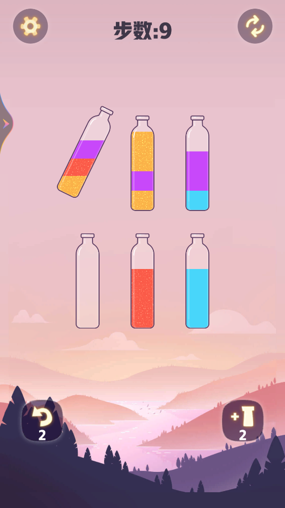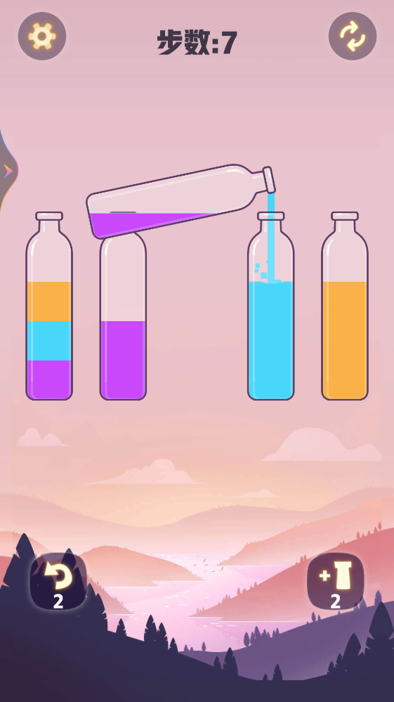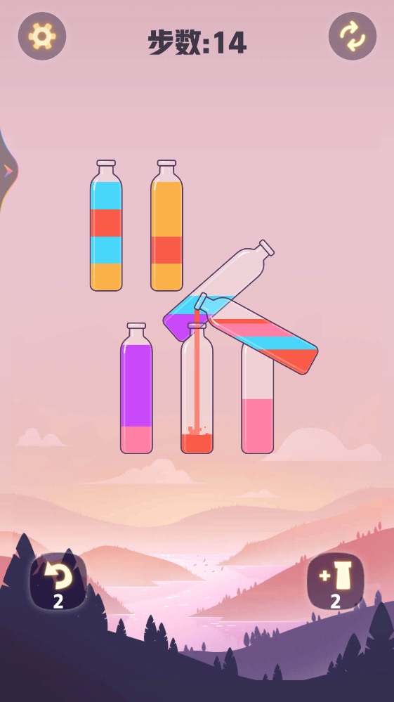 5.还有神秘的关卡,我们只知道瓶子第一层的液体,需要倒出第一层才能看见底下一层的液体,这就需要我们谨慎操作了。