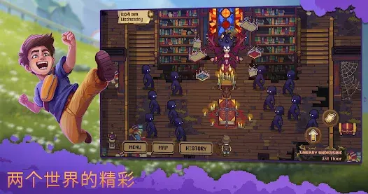 玩家将在回合制的战斗系统中与各种怪物作战,需要策略性地利用角色的技能与能力。战斗场景多样,包括图书馆、公园等地点,每个场景都有独特的地形和环境要素。