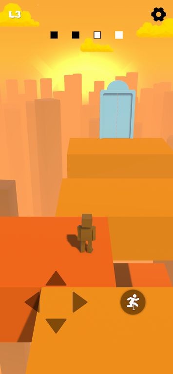 1、左下角的四个按键能够控制角色左右前后移动,右侧则是跳跃,先一直往前面移动。