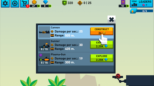 1、开始游戏后,选中空位后点击武器开始建造。