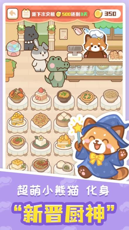 小熊猫餐厅是一款合并消除+模拟经营游戏,在小熊猫餐厅中,玩家将扮演一位可爱的小熊猫厨师,通过合并食材、装饰餐厅和管理业务,逐步打造一家独具特色的餐厅帝国。