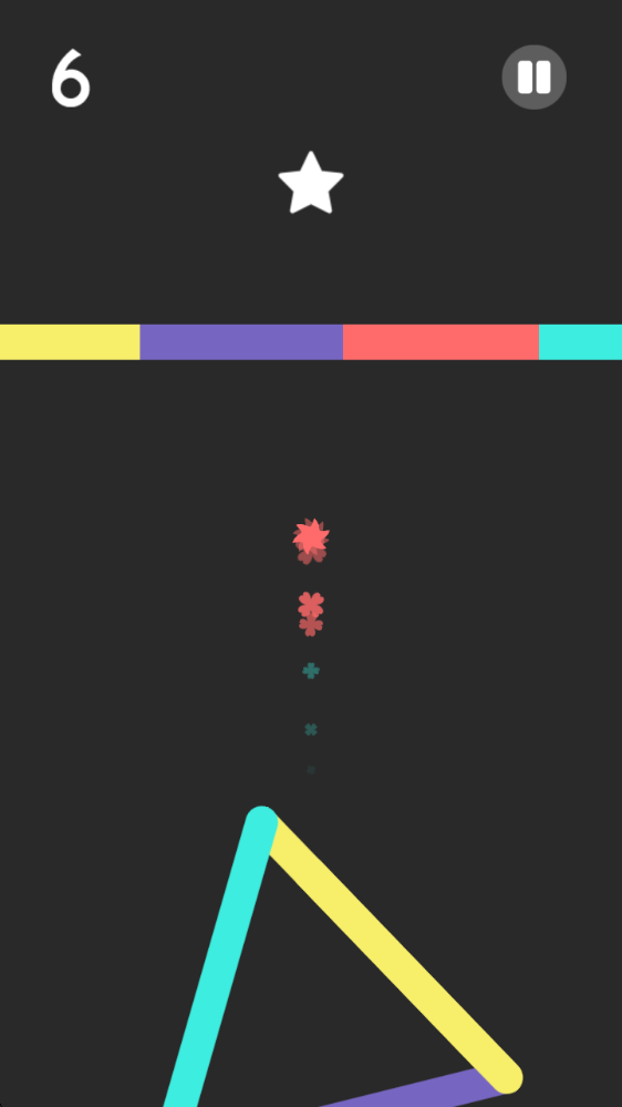 2、过程会遇到很多跟颜色有关的障碍,小球只能穿过和自己颜色相同的障碍。