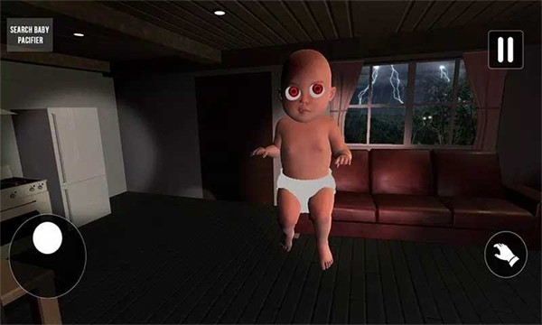 4、游戏操控,左侧是控制位置移动,右侧则是抓起,右上角可以暂停,现在走向你前方的baby抱起他
