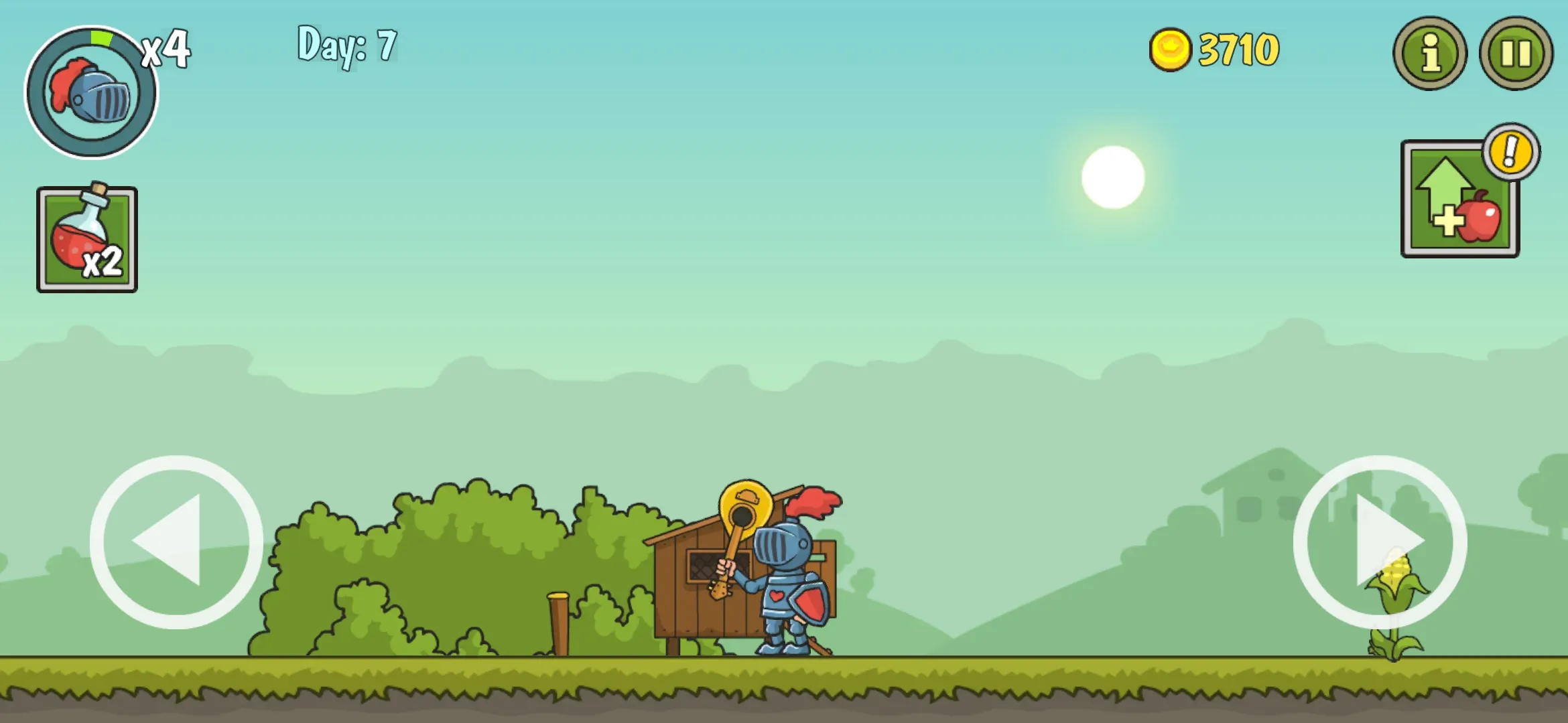1、游戏玩法十分简单,点击左右箭头进行移动,靠近物体就会用手中的武器进行攻击。