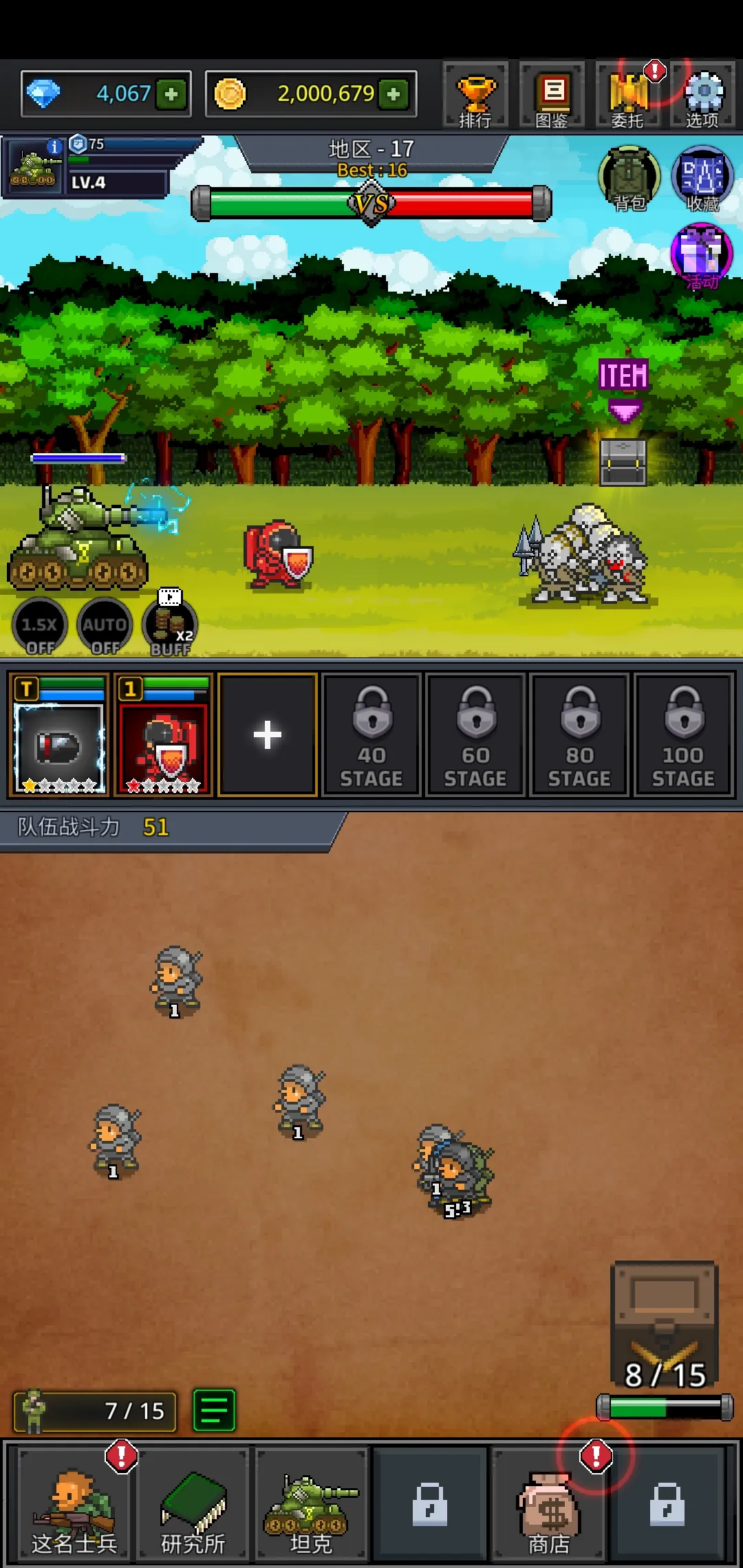 游戏拥有多个章节和海量关卡,每个关卡都有独特的敌人和挑战。关卡中还设置了强大的Boss敌人,击败Boss可以获得丰厚的奖励和稀有士兵。不断挑战新关卡,是驱动玩家前进的主要动力。